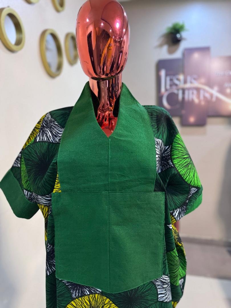 Be the first to review “100% cotton Ankara boubou mixed with asooke Free size (Size 14-18)